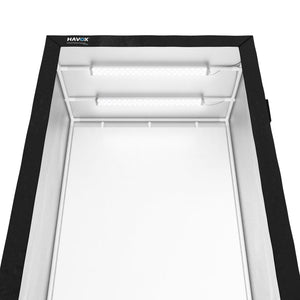 Havox's all-in-one photo booth is the solution to optimize space, the lighting is orientable and movable. A photo booth is mainly used for full-length photos, head and shoulders portraits, large products, display mannequins, and accessories.